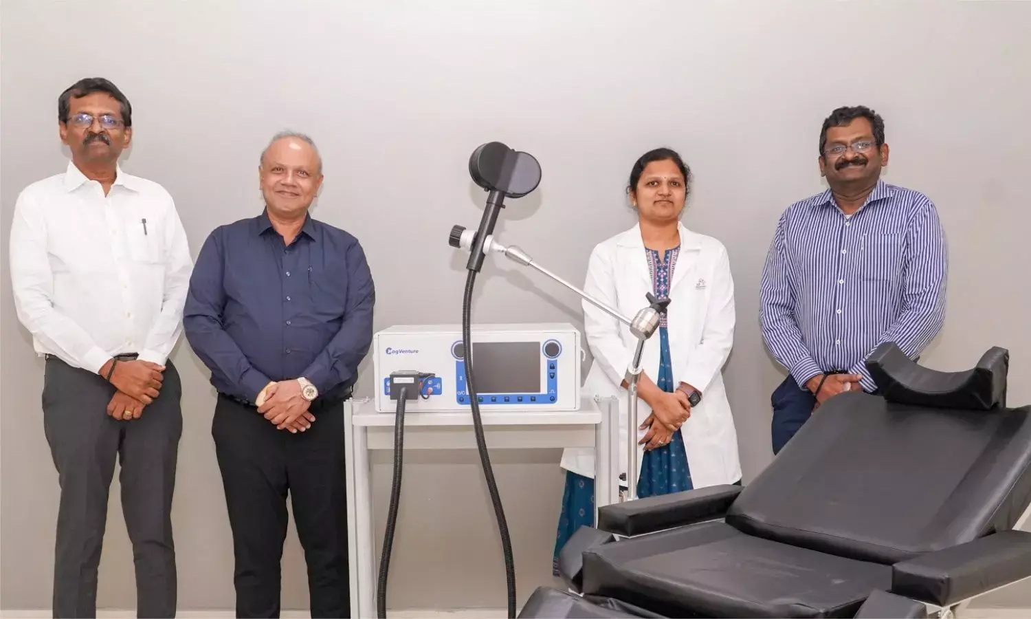 Transcranial Magnetic Stimulation (TMS) therapy was inaugurated in the presence of Mr. Muthu Subramanian, Executive Director, Mr. Prassanna, Group COO, Dr. Sindhuja, Senior Consultant Neurologist, and Prof. Dr. S. Sundar, Senior Orthopedic Surgeon, Director, and Medical Director, VS Hospitals.