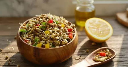 स्प्राउट्स – अंकुरित दालों में विटामिन्स और मिनरल्स की मात्रा बढ़ जाती है। मूंग या चना स्प्राउट्स में प्रोटीन भरपूर होता है, जो शरीर की ताकत बढ़ाता है और मांसपेशियों को मजबूत करता है। नींबू, नमक और थोड़ा प्याज मिलाकर इसे स्वादिष्ट बनाया जा सकता है। यह न केवल एनर्जी देता है बल्कि वजन को संतुलित रखने में भी मदद करता है।